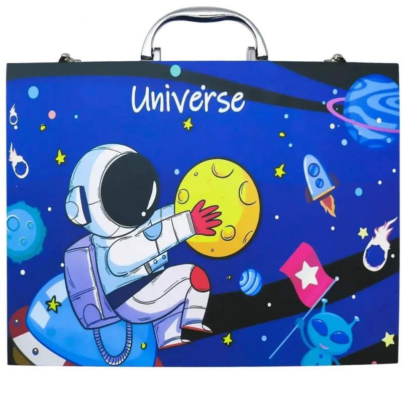Coffret de coloriage Space avec crayons, feutres, stickers et feuilles thématiques. Idéal pour éveiller la créativité des enfants passionnés d’espace.