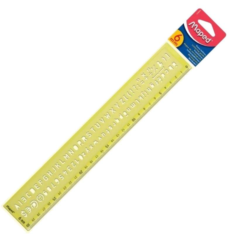 Trace-lettre Maped N°6 : gabarit d’écriture pour tracer des lettres, chiffres et symboles avec régularité et précision.