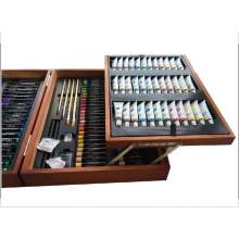 Valise d’artiste complète avec 174 pièces, comprenant crayons, feutres, pastels à l’huile, peintures et accessoires, le tout organisé dans une élégante boîte en bois robuste.