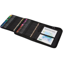 Les 65 crayons de couleur offrent une gamme étendue de teintes lumineuses, tandis que les 5 crayons de croquis permettent un tracé précis pour le dessin au graphite.